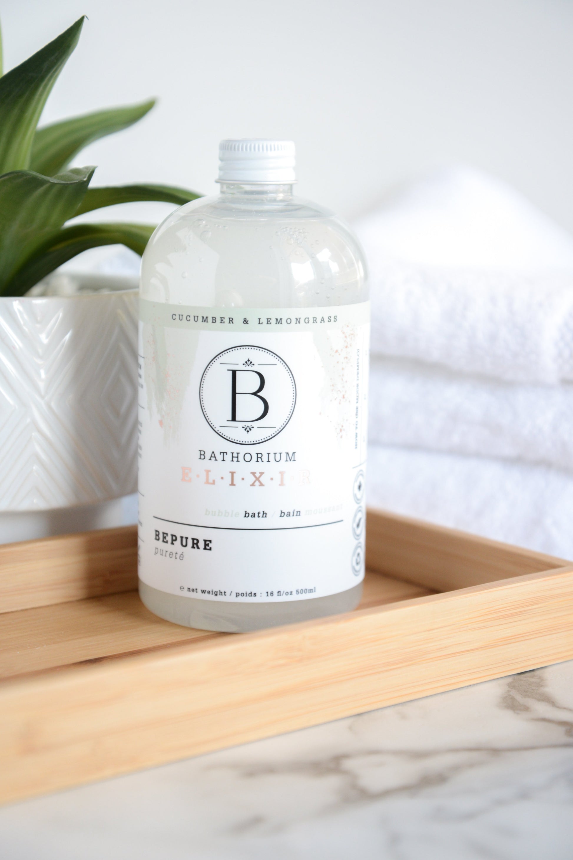 Neutral bubble elixir that pairs with any Bathorium bath bomb or crush varietal. Soft dewy cucumber water hydrates skin and lemongrass delicately grazes the entire body. Pure, clean and luscious bubbles.